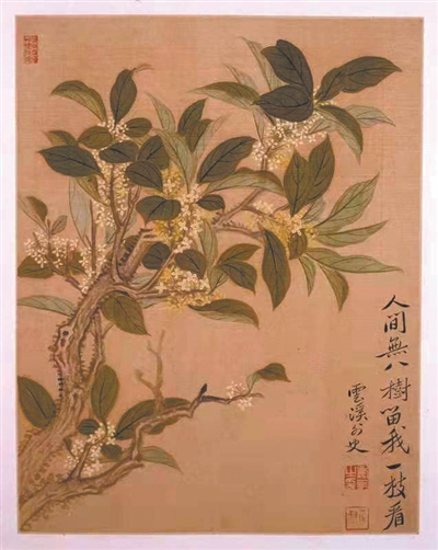 《桂花图》是“清初六大家”之一的恽寿平的作品。图中桂树苍劲,枝干挺拔,敷色纯净素雅,笔墨浓淡相宜。右下方自题:“人间无八树,留我一枝看。”