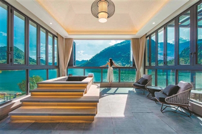 近年来,空间开阔、私密性强、档次高的别墅类型度假产品在省内周边游产品中越来越受欢迎。其中,位于韶关市乳源瑶族自治县大桥镇的蓝山源岭南东方温泉酒店依山面湖,设计风格充满浓郁的东南亚高端海岛度假酒店风情。度假区景观以湖光、山地和自然植被为主,另有“稀”“幽”“旷”“秀”四大特征。