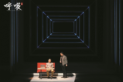 话剧《呼吸》呈现了一个现代凝练的舞台,十二根像素灯柱与投影相结合,营造出时间的速度与时光的流动感,时光飞逝光阴流转,不变的始终是临危不惧、敢医敢言的医者仁心。全剧由八个像素灯带方框打造出的可移动装置,在不断的运动变化中构成多层次的视觉空间,并通过多媒体与灯光的光影作用呈现出呼吸感与纵深感,让观众直面感受该剧的现代感和科技感。
