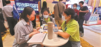 “我们主要做餐厨类产品,这是我的名片和电子资料。”“老朋友,我们之前联系过!明天到您展位去看看。”昨日下午,记者在第130届广交会双循环促进活动现场看到,参展商与国内采购商正围着谈判桌火热洽谈。