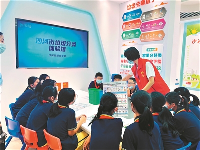 “这个我知道,废弃的充电电池属于有害垃圾。”在沙河街垃圾分类体验馆里,先烈东小学的学生们和廖穗敏玩起了垃圾分类小游戏。同学们一会儿好奇地摸摸普及分类小知识智能机器人,一会儿认真阅读科普墙上的分类小知识。分类体验馆里,生动形象的图文记录了沙河街道垃圾分类工作开展情况,同学们还可以通过亲手制作垃圾分类模型,学习到更为详细的垃圾分类知识。