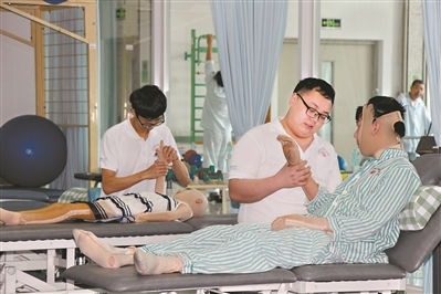 在这里,由康复医师、康复治疗师、康复护士、社工等专业人员构成的康复团队,在国内率先深入落实ICF核心内涵,对每个患者分别进行初、中、末期康复评定,推动伤残患者重返工作岗位,重新回归家庭和社会。