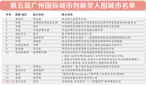 主办方介绍,11月8日至10日将连续举行四场广州奖入围城市答辩会,各入围城市将在线上展示有关创新项目,并接受有关专家和媒体的提问,最终由评审委员会选出5个获奖城市,并在11月12日晚举行颁奖典礼。