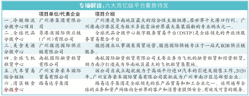 借本届进博会契机,南沙举行了冷链物流分拨中心、全球优品分拨中心、美食美酒分拨中心、全球飞机租赁中心、汽车贸易综合枢纽、湾区粮食分拨中心六大百亿级进口平台启动仪式。