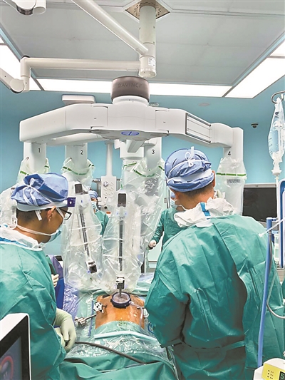 而说起陈先生这台手术,不能不提的是请来的这位“大咖”——达芬奇机器人。这种高级腹腔镜系统有多条机械臂,医生可以遥控它完成双手难以完成的操作。而且,合并感染性疾病的患者手术使用达芬奇机器人能有效减少医护人员职业暴露的风险。