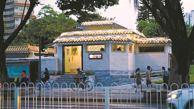 海珠区滨江东路周周乐文化广场旁有一座公厕,不时有锻炼完的老人前来如厕。远远望去,公厕灰墙黛瓦,在绿荫掩映下毫不突兀,跟周围景色融为一体。