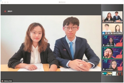 真实赛场上对庭辩人的临场应变能力要求更高,两位出庭“律师”根据法官的提问频次不断调整语速以及论点数量;及时并清晰地记录对方“律师”的主要论点,并找出问题进行有力回击。面对如耶鲁大学国际法学者、卢旺达问题国际刑事法庭出庭律师等具有丰富经验和学识的法官,两位出庭律师根据已有的法律依据,组织语言,结合案件事实依据,得出有利于己方的结论,其中一庭的法官打出94分的好成绩。