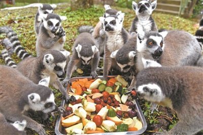 广州日报讯 (全媒体记者轩慧 摄影报道 通讯员李木生)环尾狐猴吃“冬至大餐”、长颈鹿睡“暖垫”……12月21日,迎来了冬至节气。深圳野生动物园饲养员为该园动物准备了“冬至大餐”,并为一些怕冷动物准备了御寒装备,动物们舒适过冬至。