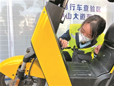 1月6日,记者走进电动自行车警邮智慧服务中心,这里数十个席位分工明确、各司其职。在初审岗,工作人员正仔细比对市民提交的申请资料。“加装了车尾箱和儿童座椅,和产品合格证上的参数明显不符。”工作人员迅速填写初审意见,提醒车主将电动自行车恢复原状后再次提交申请。