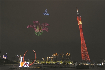 以光束点亮城市肌理,以色彩增添都市温度。在广州,无论是珠江两岸的亮灯仪式、点亮夜空的无人机表演,还是已走过十年岁月的广州国际灯光节,都将广州这座城市的鲜活、灵动、创新、繁华在光影中点燃。 春节期间,珠江北岸24栋建筑亮灯喜迎虎年新春。整个灯光秀有“福”字、“生龙活虎”“年年有余”“国泰民安”“奉献广州”等字样和醒狮图案,照亮了珠江两岸,也让广州街头的年味更浓。 “庆新春迎冬奥”主题无人机编队飞行表演也于近日在广州海心沙上演,1000架无人机组成的“冰墩墩”“雪容融”璀璨夺目。 作为世界三大灯光节之一,广州国际灯光节自2011年第一届开始,到2020第十届的举办,已成为城市文化和形象传播的一张靓丽名片。“光”不但点“靓”城市,也点燃了夜经济的星星之火。据不完全统计,10年灯光节,参观总人数高达6500万人次,带动城市文化、旅游、服务等产业的发展。