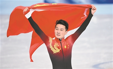 2月7日,在首都体育馆举行的北京2022年冬奥会短道速滑项目男子1000米决赛中,中国选手任子威夺得冠军。新华社发