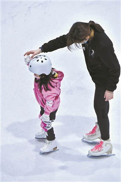 值得一提的是,今年虎年春节正好遇上北京冬奥会,在一定程度上带动冰雪运动成为最时髦的冬季活动。虎年开工首日,位于商场内的冰河湾真冰场上不乏前来体验冰雪运动魅力的市民。