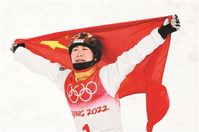 2月14日,北京冬奥会自由式滑雪女子空中技巧决赛在张家口云顶滑雪公园举行,中国选手徐梦桃夺得冠军。 新华社发