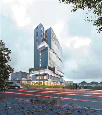 产研实验楼朝向中部自然山体、景观水体和“湾”建筑逐级跌落,充分融入整体校园空间格局,产研楼更以超大尺度底层架空形成东区校园入口,形成大气恢弘的礼宾空间;学术交流中心作为校园东北角标志性建筑,造型优雅现代,功能配套齐全,为校内师生及周边园区提供学术会议、成果交流的共享之所。