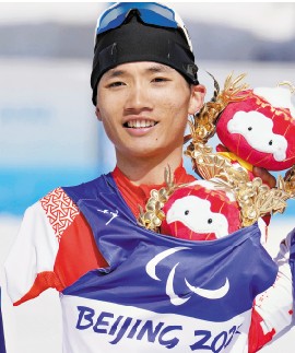 四是年轻的中国军团朝气蓬勃。代表团中有85名运动员为首次参加冬残奥会,占88.5%,平均年龄25岁。代表团开幕式旗手、未满18岁的河北张家口运动员郭雨洁在残奥冬季两项女子短距离(站姿)比赛中夺金;20岁的高山滑雪运动员张梦秋取得2金3银的好成绩;纪立家、王鹏耀、朱永钢、张义琦平均年龄19岁,分列残奥单板滑雪男子障碍追逐UL级冠亚季殿军创造了中国冬季运动的历史;代表团年龄最小的耿焱红获得一枚单板滑雪银牌。中国年轻一代残疾人运动员表现出乐观、进取、阳光、自信的良好风貌,正是我们国家发展进步、充满活力的生动写照。