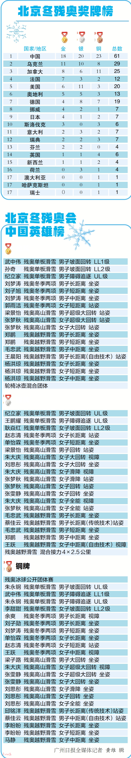 这是中国第6次组团参加冬残奥会,也是中国参加冬残奥会以来,代表团规模最大、运动员人数最多、参赛项目最全的一届。本届冬残奥会,中国选手共获得18枚金牌,体现了分布广、实力强的特点,其中,单板滑雪项目,中国选手获得3金3银4铜,以10枚奖牌位居单项奖牌榜第一位。