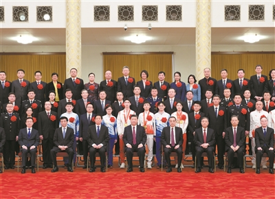 在欢快的乐曲声中,习近平等为受表彰的个人和集体代表颁奖。