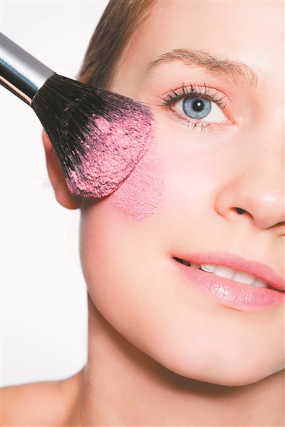注意:不要打在眼窝等凹陷处,易凸显面部缺陷,疲惫感顿生。尽量选用饱和度低、显色度低的腮蓝,更好驾驭。