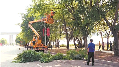 据了解,沙田城管部门每年都会对辖区绿植进行修剪和杀虫工作,抢在多雨季节来临前,消除因树枝掉落和遮挡路牌、路灯等而引起的安全隐患。同时,对绿植进行造型修剪,提升景观效果,努力打造绿色生态、优美洁净的城市环境。