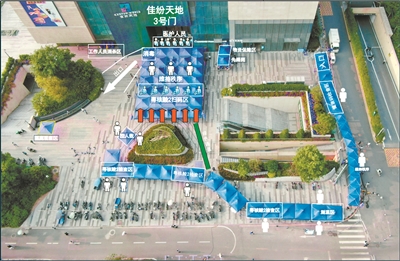 这支技术小分队立即行动起来,投入到工作中。梁文锦先操作无人机拍摄了核酸采样现场的高空平面图,然后张迪用CAD软件区分不同的区域,分别为核酸检测入口、健康码检查区、核酸码检查区、绿色通道、人流控制区、核酸码扫码区等,并用生动的图标将各个区域一一标出,使得整个核酸检测现场布置一目了然。