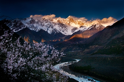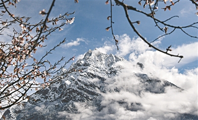 进入5月,野生杜鹃花和黄牡丹陆续跃上枝头,与高耸入云的雪峰连为一片,让人产生壮美的感觉。