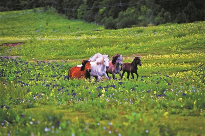 夏季的鲁朗,各种各样的野花竞相开放,灿若繁星;成群的牛羊在这花海牧场里悠闲漫步;山间的云雾时聚时散,雪山、林海、田园,宛若世外桃源。夏日的鲁朗牧场,有着辽阔的草场、和煦的微风,令人心旷神怡。