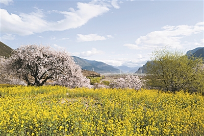 在林芝,不是江南,胜似江南。高原澄澈的天空,是这幅立体画卷中最明亮的背景色,入夜后更是星空璀璨;雪山冰川雕刻般冷峻的线条,为大地带来刚毅的骨架;江河碧水则是温润的底色,将生机洒向草场和田野。进入5月,生活在这里的人们正在享受浓浓的春意,在雪山大河间,山花绽放。