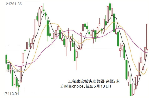 盘面上,工程建设板块连续8日上涨,从4月26日至5月10日,累计涨幅近20%。其中,多只基建股涨停,金埔园林、华蓝集团、奥雅设计20%涨停,安徽建工、中设股份、园林股份等10余只股涨停;半导体板块走强,中英科技20%涨停。