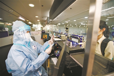 今年3月8日清晨,白云边检站指挥中心通知,刚刚抵穗的发热旅客需要移民管理警察进入负压舱进行远程验放。才走下入境验证台的于童又匆匆赶往口岸负压舱。