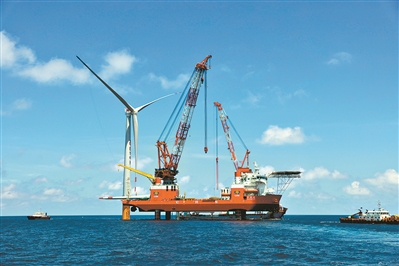 在广东省揭阳市神泉镇南面海域,国家电投揭阳神泉海上风电项目的53台风电机组正随风运作,项目建成目前亚洲最大的海上风电集控中心,全容量并网后,每年可提供清洁电力10亿千瓦时,节约标准煤耗30万吨,减少二氧化碳排放78万吨,对推动广东省海上风电开发和粤东地区产业升级具有重大意义。