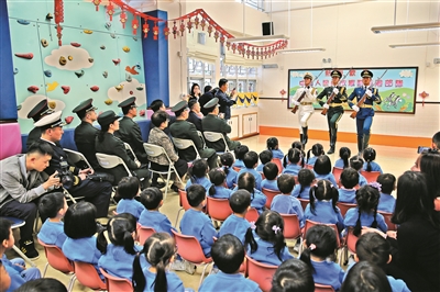 连队官兵积极投身慰老爱幼、无偿献血、义务植树等活动中,展示出一张张威武文明的青春名片。进驻香港以来,装步一连先后完成各类交流联谊活动200多次,连队官兵的不懈努力也赢得了香港市民越来越多的信任、认可和爱护。截至目前,连队共参与举办十五届香港青少年军事夏令营和九届香港大学生军事生活体验营。除了开办军事知识讲座,组织体能、队列、徒步行军、激光模拟射击和军体拳等课目训练,香港青少年们可以乘坐装甲车驰骋训练场,登上舰艇出海航行以及观摩反恐演练及陆海空三军训练。随着一批批满怀纯真和期待的香港青少年踏进军营体验“淬火”,国家认同感和归属感也在他们心中扎根。