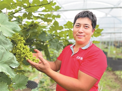 除了原有的南玉、红地球等品种,王德利今年还引入了一个名叫“瑞都科美”的新品种。尽管新品种要到明年才开始挂果,但王德利选择改种这个品种却一点都不迟疑,“这种葡萄最晚到11月都能结果,可以避免7、8月份葡萄集中上市时的低价销售,既能满足游客采摘需求,也能提高我们的收入。我今年还开始种阳光玫瑰葡萄,价格高,也非常受顾客欢迎。”