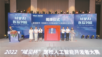 总决赛现场,金域医学与华南理工大学合作建设的智能医疗大数据联合实验室宣布挂牌成立,双方将通过产学研合作,实现基础共建、协作创新和产业引领,助力广州乃至广东打造医检人工智能产业发展高地。