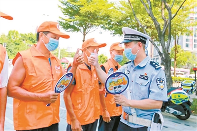 广州日报讯 (全媒体记者刘艺明 通讯员胡荧彬摄影报道)在公安机关推进的夏季治安“百日行动”中,文明交通志愿者们的安全疏导和暖心服务守护着万千市民的平安出行。昨日,佛山禅城公安联合禅城区文明办,给坚守在交通志愿服务一线的志愿者们送上“文明月饼”,表达浓浓的节日祝福。