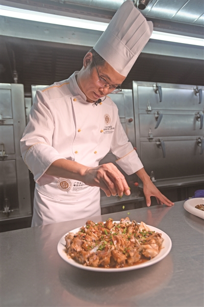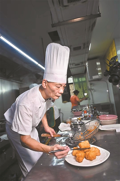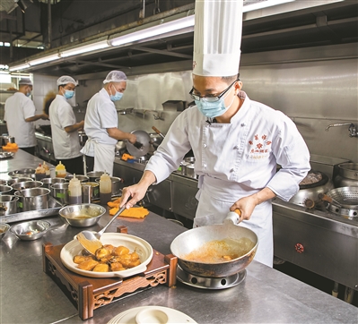 6年前,他调到厨政中心,承担菜品研发和流程管控等工作。前几天,他与几位同事轮流到不同的门店餐厅,从整体工作流程层面把握后厨运转。“这么多年来,我们早已习惯了这种状态,我们的家人也很理解。能为他人烹煮幸福,就是我们的幸福。”