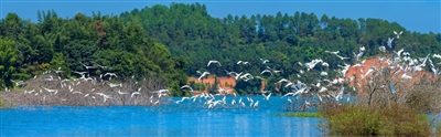 入秋以来,河源境内的万绿湖旅游风景区来了一群“不速之客”。据广东万绿湖国家湿地公园管理处昨日初步估算,此次栖息万绿湖的燕鸥有上千只。记者现场看到,在万绿湖清澈的湖面上,一群群燕鸥正翩翩起舞,戏水觅食,有的组队从湖面掠过,悠然自得;有的低头觅食,丝毫不受外界影响;有的张开美丽的翅膀,自娱自乐。