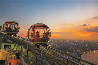 市民游客在广州塔摩天轮俯瞰珠江两岸羊城美景。孙春旻供图