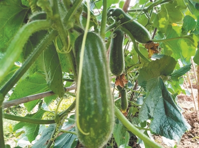 节瓜又名毛瓜,因“一节一瓜”而得名。黑毛节瓜又称“水影瓜”,瓜面有暗纵纹斑点,顶端钝圆,肉厚而致密,呈圆柱形,长20厘米左右,直径6~7厘米。