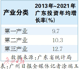 2013年~2021年,广东工业投资年均增长10.3%,其中,制造业投资年均增长9.4%。