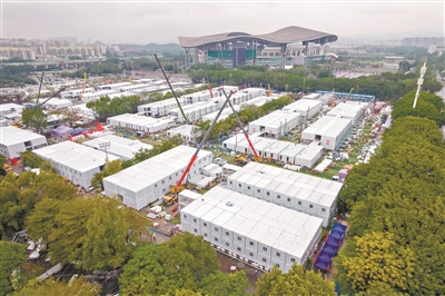 广州市天河区体育公园地块应急项目占地面积8.1万平方米,建筑面积4.7万平方米,整体规划建设2565个打包箱,共7000个床位。截至昨日上午9时,广州市天河区体育公园地块应急项目东区打包箱已安装1129套,隔板已安装810套,暖通安装、电气、给排水等工程施工正在压茬推进,床、空调等也已陆续安装。