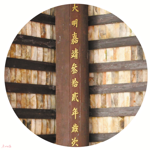 在陆树坚的指引下,记者在祠堂中堂脊梁上发现秀美阳文:“时大明嘉靖三十二年岁次癸丑(1553年)仲冬吉旦重建。”这是广裕祠最早的重修记录。在中堂后面东廊间左侧墙内嵌一块《重建广裕祠碑记》,上面落款为“大明崇祯岁次己卯(1639年)手夏吉旦重修”,这是第二次修缮。在后堂的脊檩下和前厅的脊檩下分别刻有阳文“时大清康熙六年岁次丁未(1667年)事夏矣于吉旦众孙捐金重建”“时大清嘉庆十二年岁次丁卯(1807年)季谷重建”等字样,这是第三和第四次修缮记录。在第三进祖堂后两柱间又有横枋阴刻“民国四年(1915年)吉日柱重为修后座更房之志”。这些确凿的文字记录成为世人了解广裕祠保护过程的珍贵史料。