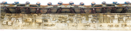 从广裕祠出来靠右,再沿着政南巷往南走上两三分钟,右手边突现一个大广场,广场的尽头有一间古屋,叫西楼,是古时打更、放哨用的。被誉为广州版“清明上河图”的江城图,就雕藏在古屋的封檐板上。陆树坚说,当时发现这个宝物时,大家又惊又喜。