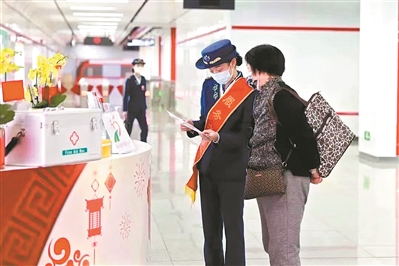 春运期间,车站工作人员化身“幸运使者”,为乘客全程提供贴心服务,向乘客传递幸运。