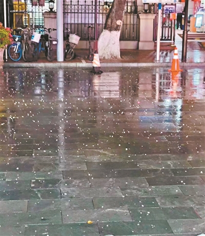 广东今年首场强对流天气来了,3月24日上午,广州越秀、天河、白云、黄埔、花都、从化等9个区都出现了冰雹,它们如“大珠小珠”掉落在马路上、屋顶上、雨棚上,引发市民拍照记录。