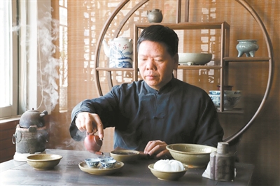 叶汉钟是国家级非物质文化遗产项目“潮州工夫茶艺”省级代表性传承人,每次采访他,都是从一杯唇齿留香的工夫茶开始。只见他轻轻端起茶杯,闻香、啜味、审韵,动作优雅,一气呵成。“茶不过两种姿态:浮、沉;茶人不过两种姿势:拿起、放下。茶若人生,沉时坦然,浮时淡然,拿得起也要放得下。”