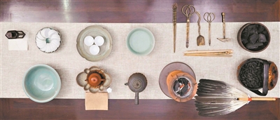 好工夫还需佐以好器具。叶汉钟介绍,潮州工夫茶所用的茶具不下十种,主要包括茶壶、壶承、盖瓯、茶杯、茶洗、茶盘、茶池、茶垫、水瓶与水钵、龙缸、红泥火炉、砂铫、羽扇与生火铜器等。
