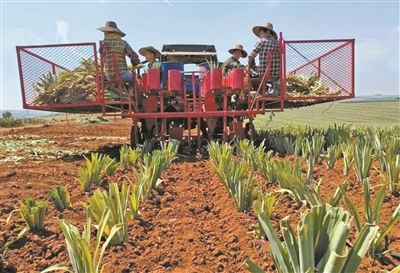 湛江农垦积极应用新型菠萝机械种植机,播种的菠萝种苗行间距均匀规整,入土深而稳,漏播率低。每台机器每天可以播种15亩,每亩种植综合成本较人工种植下降一半,节省100多元。