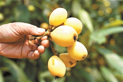 近期,郁南县建城镇白天村的千亩枇杷也开始陆续上市,吸引了不少客商前来采购。记者在白天村的天马山上看到,漫山遍野的枇杷树上挂着许多个头大如鸡蛋、色泽金黄的枇杷果。村民们正在林间忙着采摘。