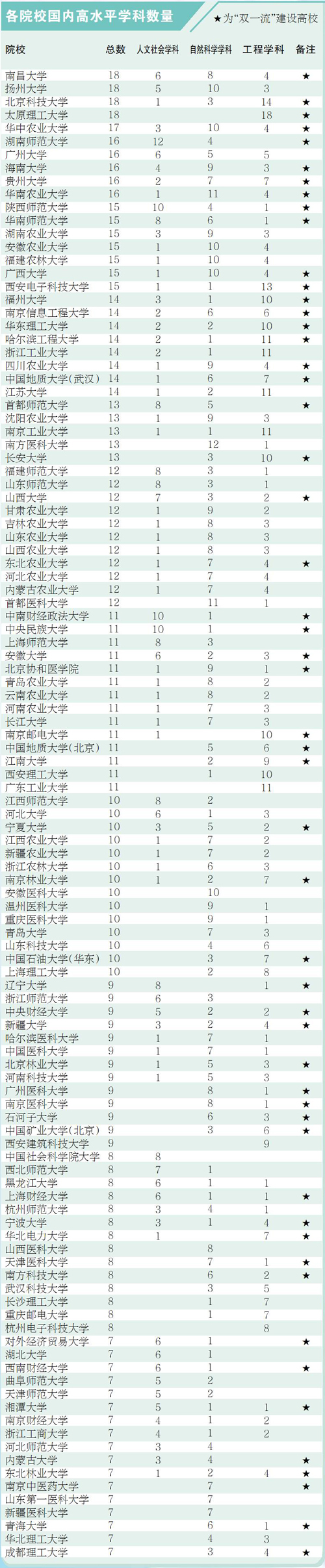 第T7版:GDI大学一流学科排行榜(2023)