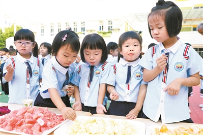 除了好玩,更有好吃的。茶山镇中心幼儿园昨日举办了“享秋”活动,幼儿园为孩子们准备了美味的水果,非常受欢迎。